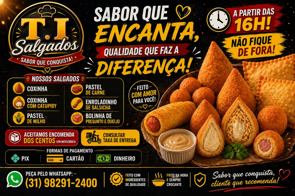 No nosso cardápio você encontra salgados deliciosos, feitos com muito capricho e ingredientes de qualidade! 😋✨